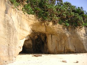この日は、干立の少し北の浜(タカラの浜というらしい)でキャンプ。ここは、今までキャンプした中でも、最高のビーチでした。砂は細かく、ビーチの奥行きも深く、大きな洞穴があって雨風を避ける事ができます。人はほとんど近付けない場所ですが、南北どちらにも集落があるので、風が吹いても安心。時間があれば、2、3日は滞在したいところです。