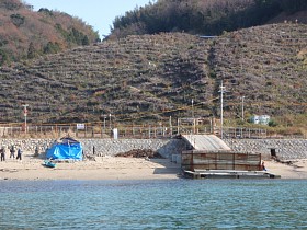 この日は、海岸から徒歩10分程度の場所にある、山小屋に泊めて頂きました。ここは、13年前に、反対派の人達が、活動の拠点にするために共同で建てた建物です。巨大なソーラーパネルが設置されているのも、中国電力への抗議の意思表示なのでしょう。他にも、もうひとつ監視小屋が建てられていて、そこには最近住民票を移した人がいるそうです。このように、原発予定地の周りには反対派の所有する土地が多くあり、中国電力も手が出せません。本来なら、原子炉は地盤の安定した陸地に建てるべきもののはずですが、それができないので、やむなく埋立地に設置する計画になっているそうです。埋立地に原子炉を作るというのは、極めて危険であるのは、誰でも想像できることでしょう。