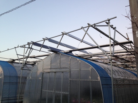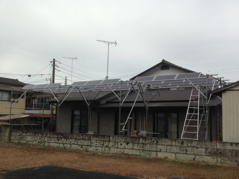 2.施主様が、できるだけ自分で作りたいというご希望で、架台とパネルはDIYで設置して頂きました。最初は、何人かで一緒に作業する予定だったそうですが、結局はほとんどお一人で作製なさったそうです。大丈夫だろうかと心配していましたが、無事に完成して、スムーズに動かすことができました。
